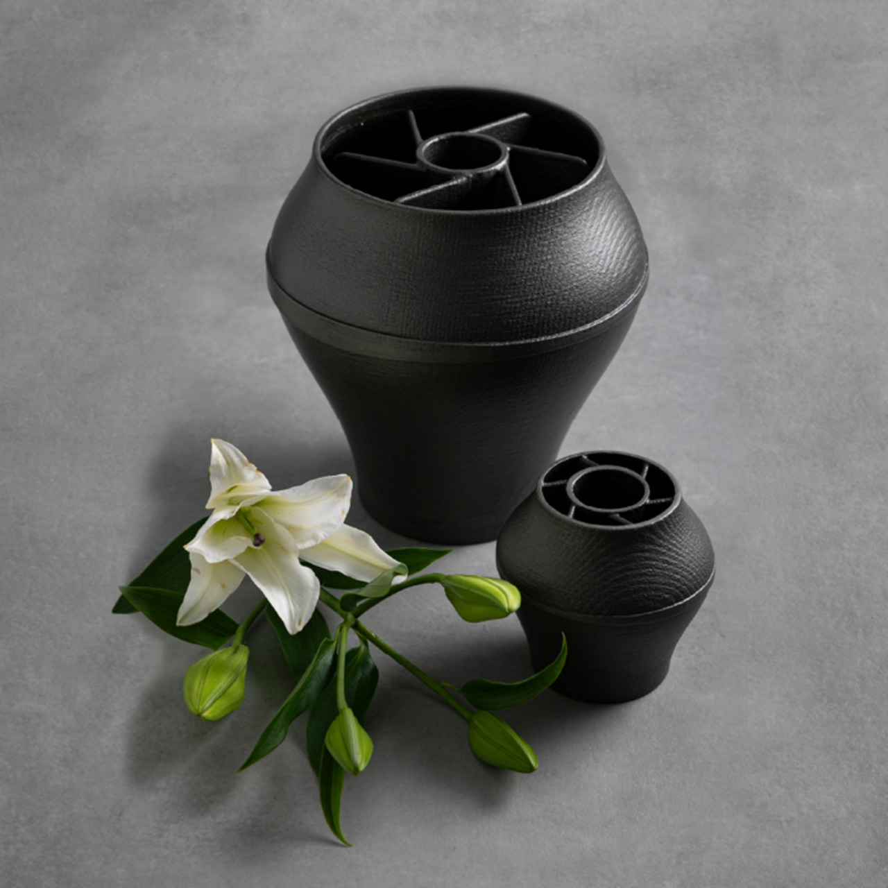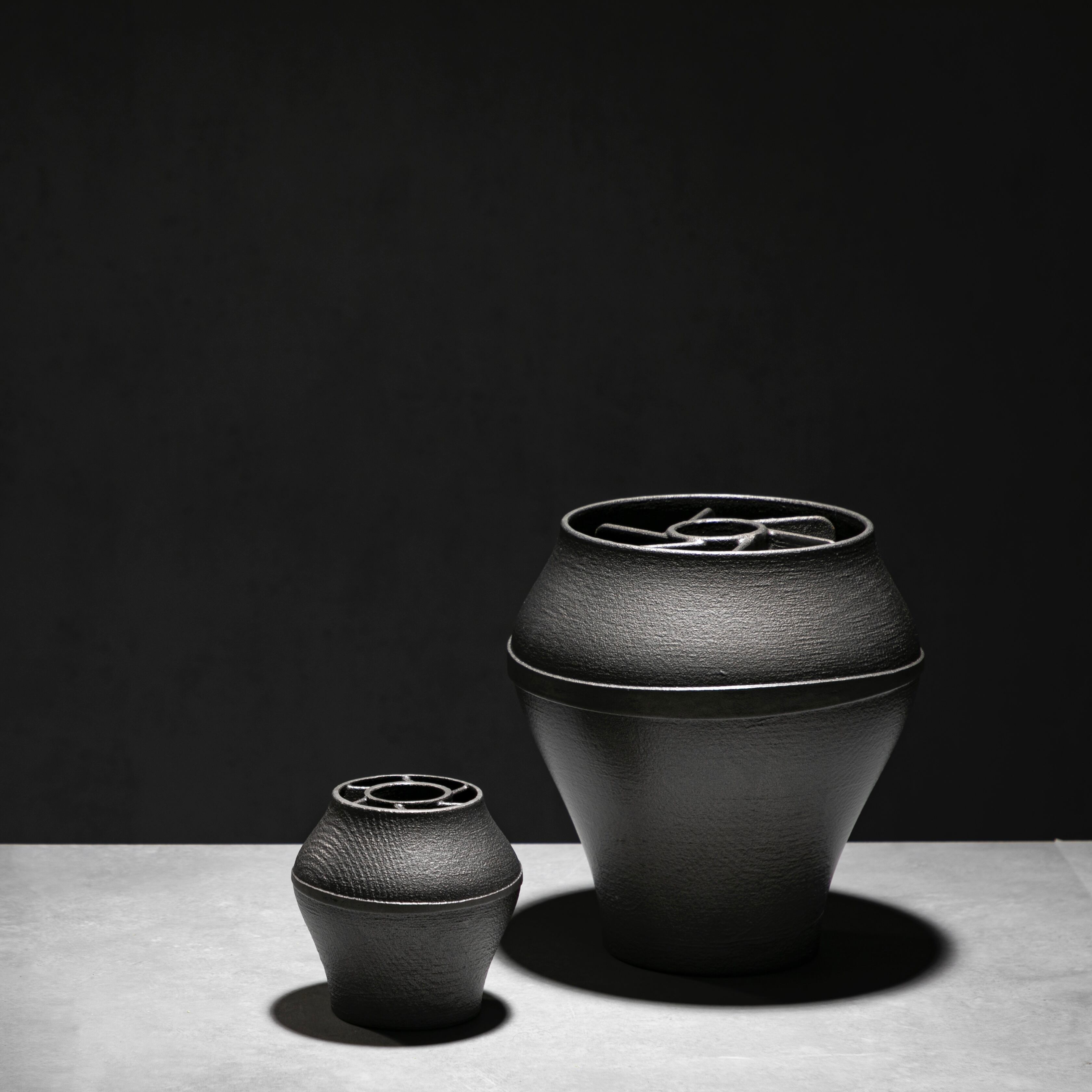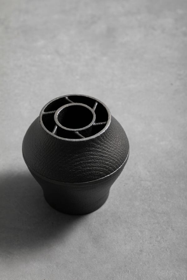 本製品は鋳鉄を素材とし、一点ずつ手作業で製作された花器です。